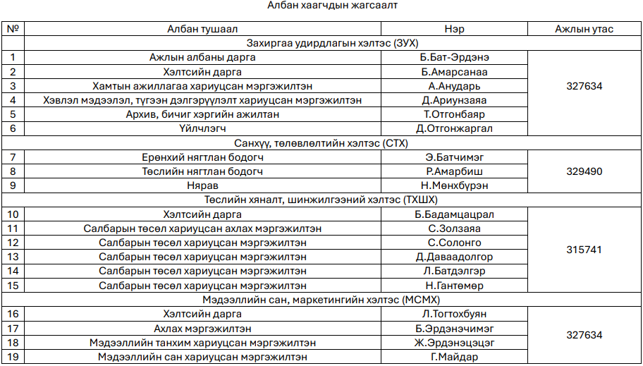 Албан хаагчдын утасны жагсаалт