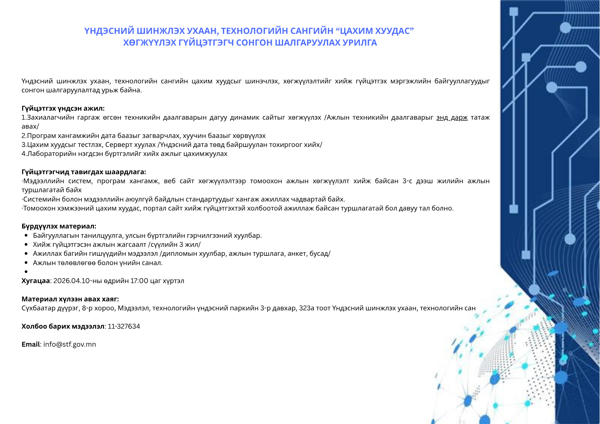 Бүртгүүлэх холбоос: https://forms.gle/GfwtbZvHm1fWe6398